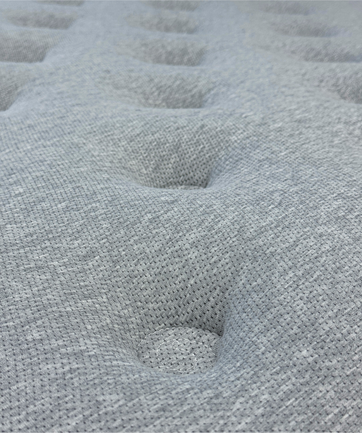 Трикотаж «Pescody» - премиальный меланжевый итальянский трикотаж с натуральными волокнами в трендовом приятном сером цвете. Благодаря своей расцветке ткань смотрится стильно и более неприхотлива к незначительным загрязнениям. Натуральные смесовые нити в составе способствуют более эффективному тепло обмену и обладают высокой гигроскопичностью, что обеспечивает комфортный микроклимат спального места