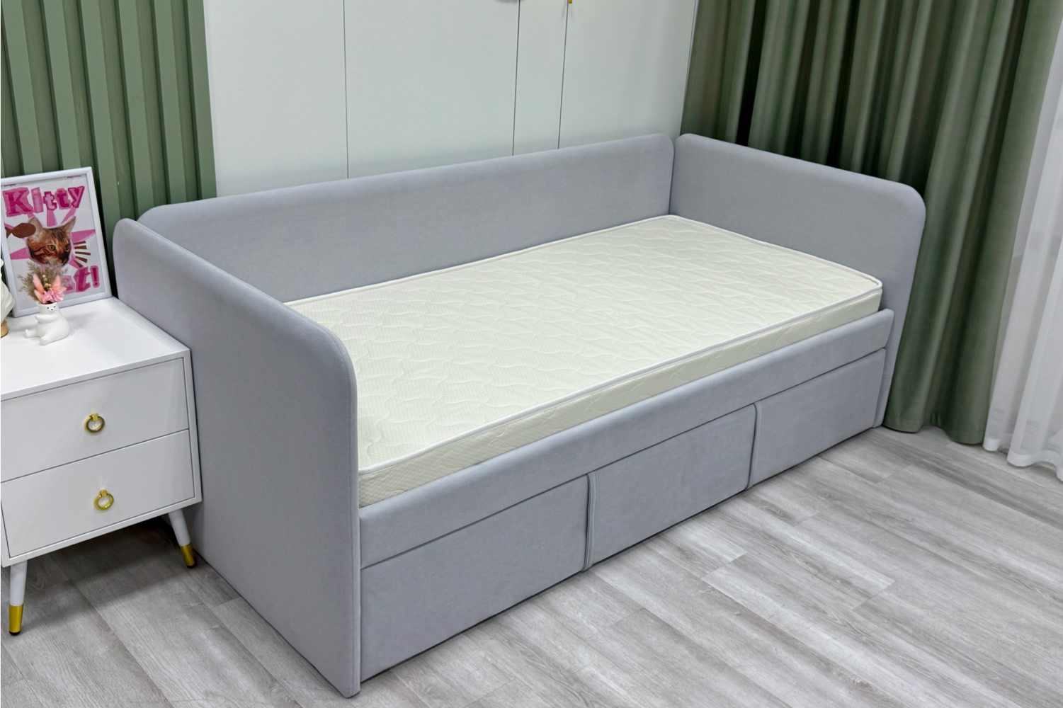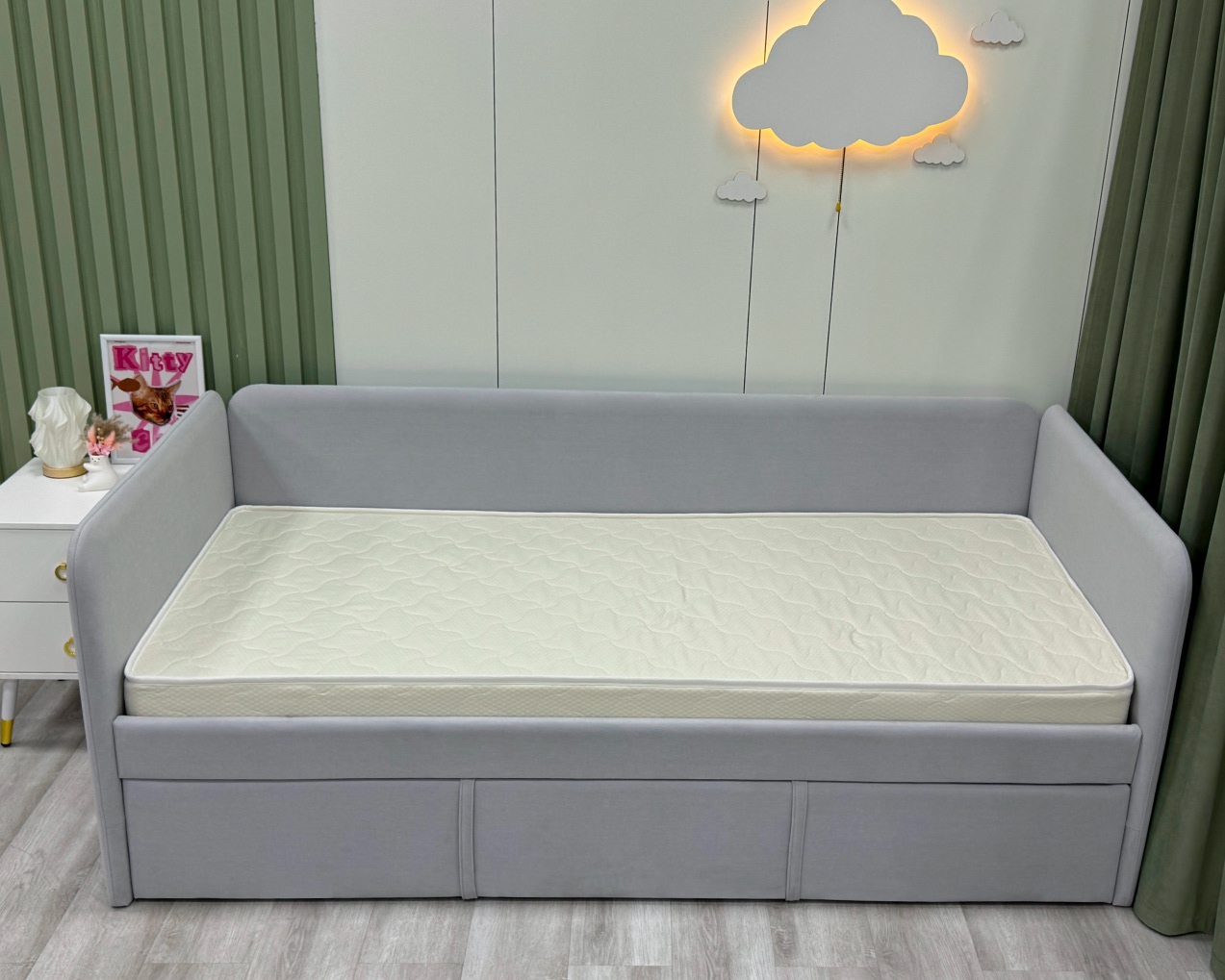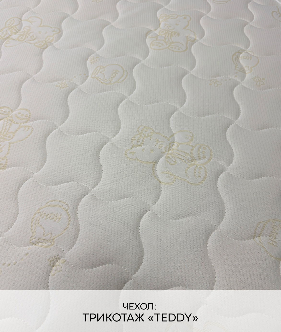 Трикотаж «Teddy» — это невероятно мягкая и уютная ткань с нежной, слегка пушистой поверхностью, напоминающей плюшевого мишку. Она создана специально для детских матрасов, чтобы каждый сон малыша был максимально комфортным и тёплым. Благодаря своей структуре трикотаж «Teddy» прекрасно сохраняет тепло, оставаясь при этом дышащим материалом, который поддерживает оптимальный микроклимат. Ткань гипоаллергенна, не раздражает нежную кожу ребёнка и устойчива к истиранию, сохраняя свою мягкость и привлекательный вид на долгие годы.)