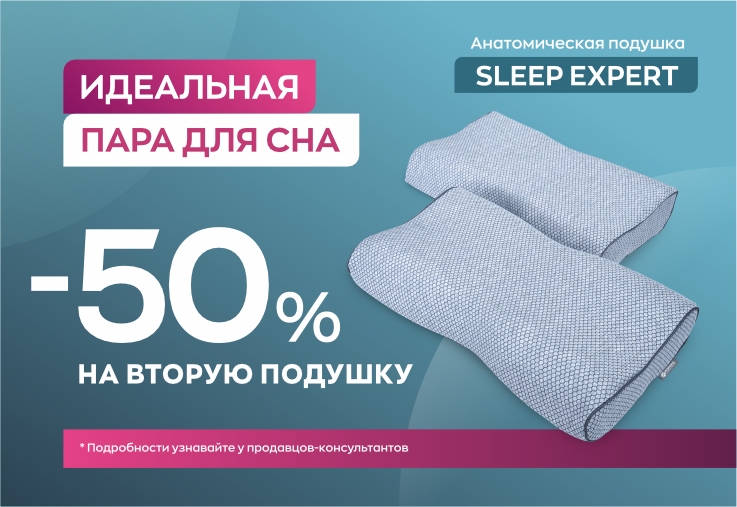 Скидка 50% от РРЦ на 2-ю подушку «Sleep Expert» 57*37*11 при покупке в одном чеке с 01.07.25 - 30.11.2025 г.